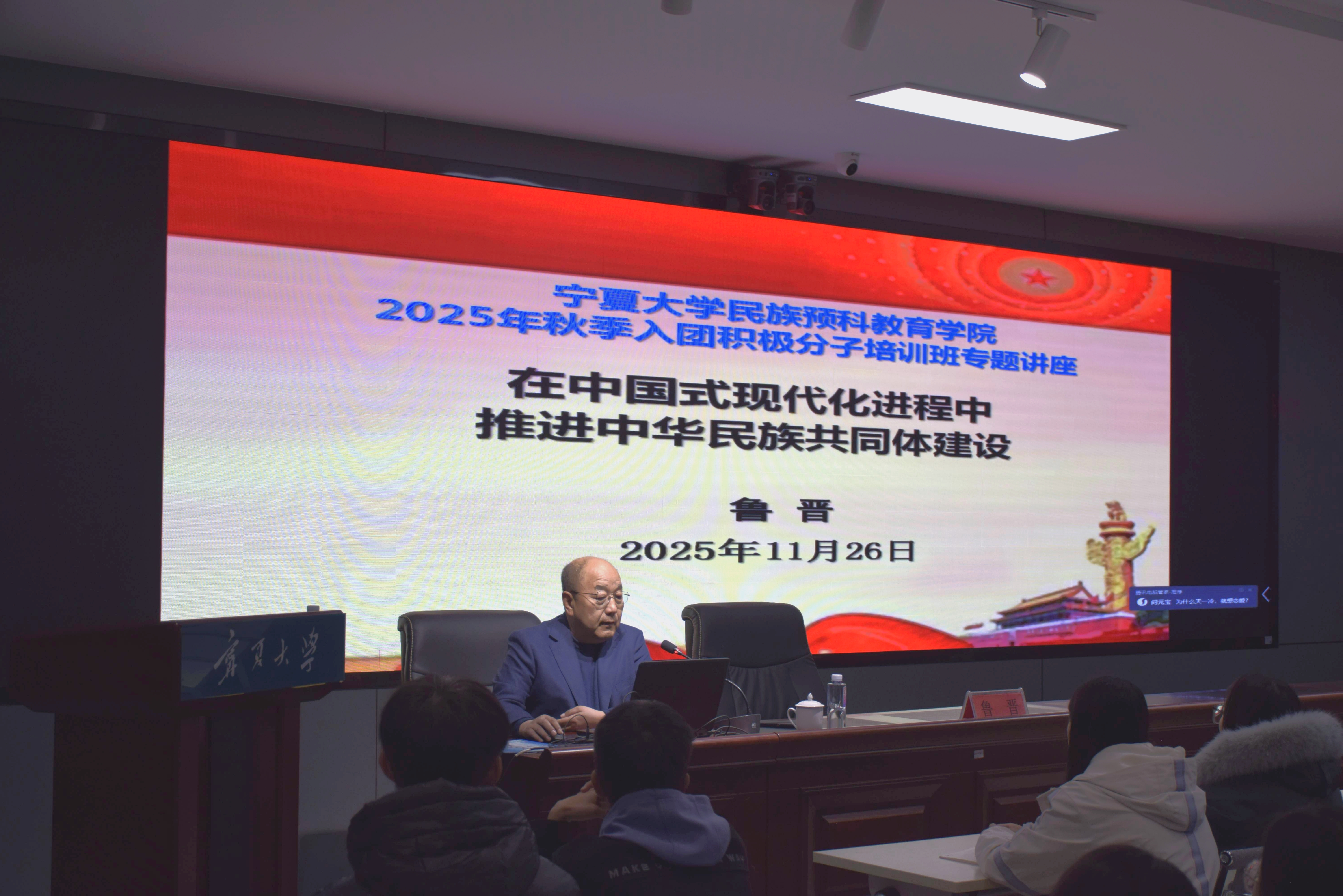 为加强对入团积极分子的思想政治引领,增强政治使命感,11月26日下午,民族预科教育学院2025年秋季入团积极分子培训班专题讲座在田家炳楼601会议室顺利开展。本次培训以“在中国式现代化进程中推进中华民族共同体建设”为主题,由宁夏大学关心下一代工作委员会宣讲团成员鲁晋教授主讲,全体入团积极分子参加。鲁晋教授围绕习近平总书记关于加强和改进民族工作的重要思想,以深厚的理论功底、生动的案例分析和精准的政策解读,为我们深入剖析和深刻阐释了铸牢中华民族共同体意识的重大意义、核心内涵和实践要求。鲁晋老师认为中国式现代化的一个重要特征,是56个民族作为一个整体共同走向社会主义现代化。中华民族共同体意识,是国家统一之基、民族团结之本、精神力量之魂。中华民族共同体建设不仅是中国共产党在新时代民族工作中的核心任务,也是中国特色社会主义现代化进程的关键组成部分。在中国式现代化进程中铸牢中华民族共同体意识,推进中华民族共同体建设,是党积极面对世界之变、时代之变、历史之变的主动战略抉择,彰显了中国共产党在现代化进程中引领社会发展的自觉,显示了党团结带领各族人民走中国式现代化道路的自信自强精神,彰显了中国特色解决民族问题的正确道路越走越宽广的中国智慧。鲁晋老师认为中国式现代化和西方式现代化有着鲜明的区别,中国式现代化是中国共产党领导的社会主义现代化,坚持中国特色社会主义是中国式现代化的前提。中国式现代化在推进中华民族共同...
