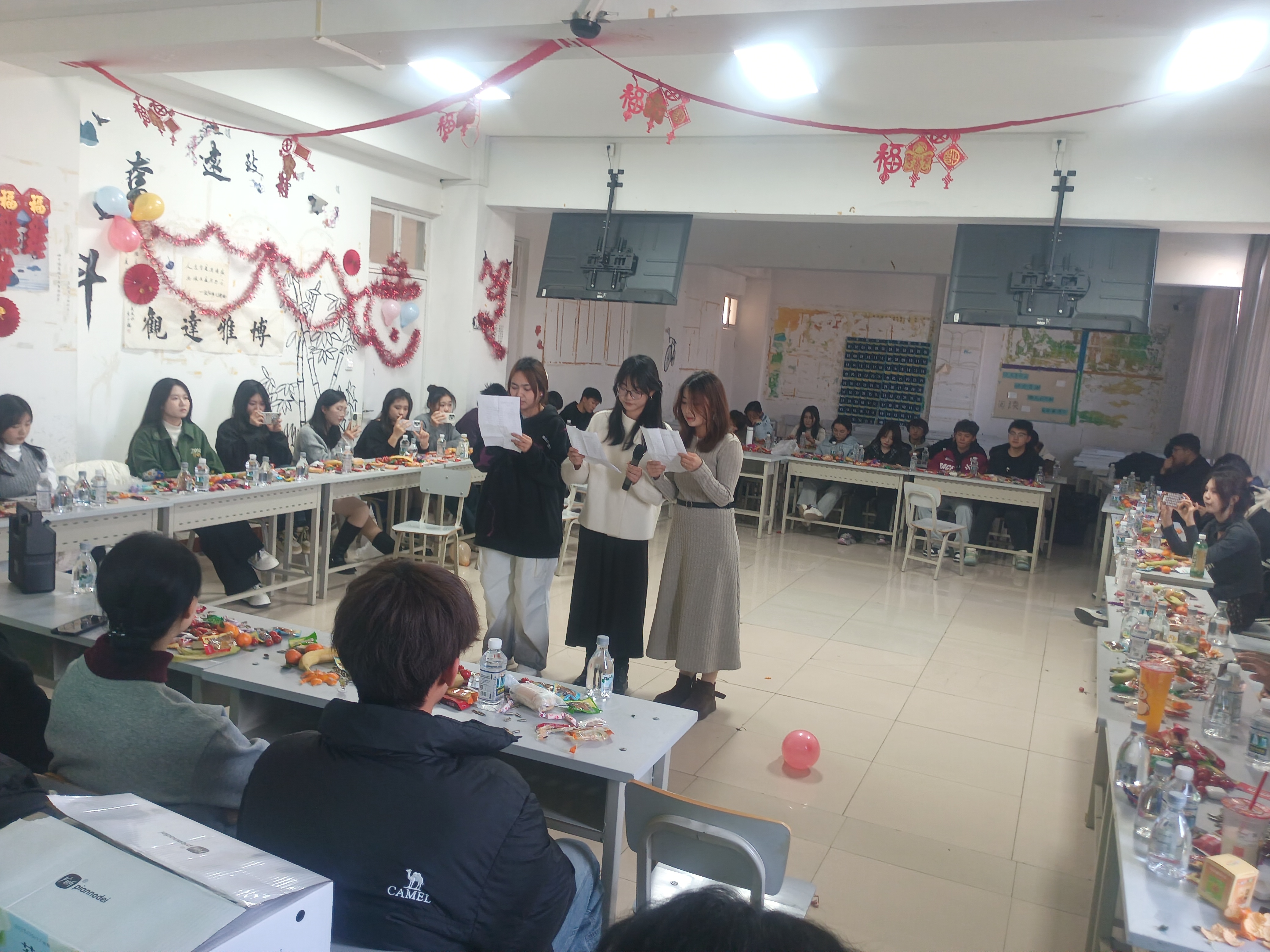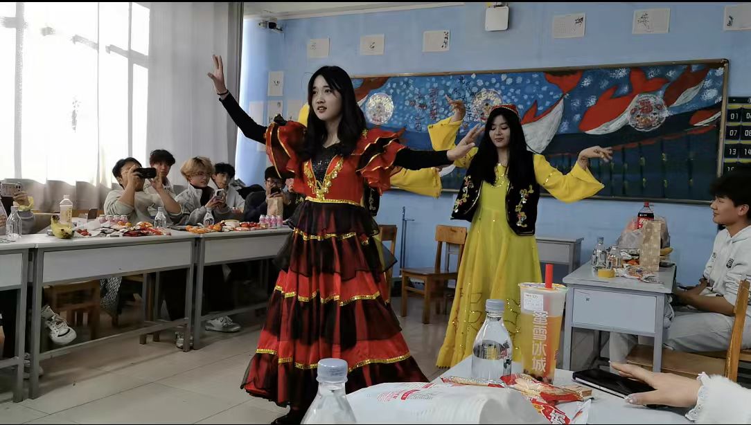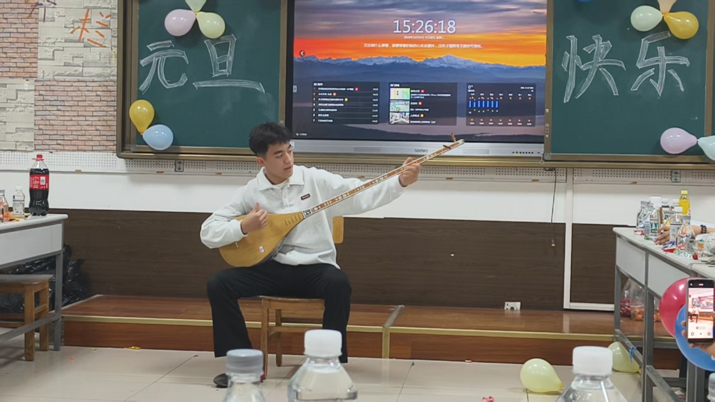 各班教室之中,彩球错落摇曳,墙壁上“元旦快乐”的字样明艳夺目,满室皆是欢乐气息。同学们精心筹备了一系列丰富的节目,有男女声独唱、民族舞蹈、情景剧、民族乐器演奏和温情满溢的集体合唱等韵味十足的文艺表演,每一项活动都如织锦之线,将各族学子的心紧密相牵。